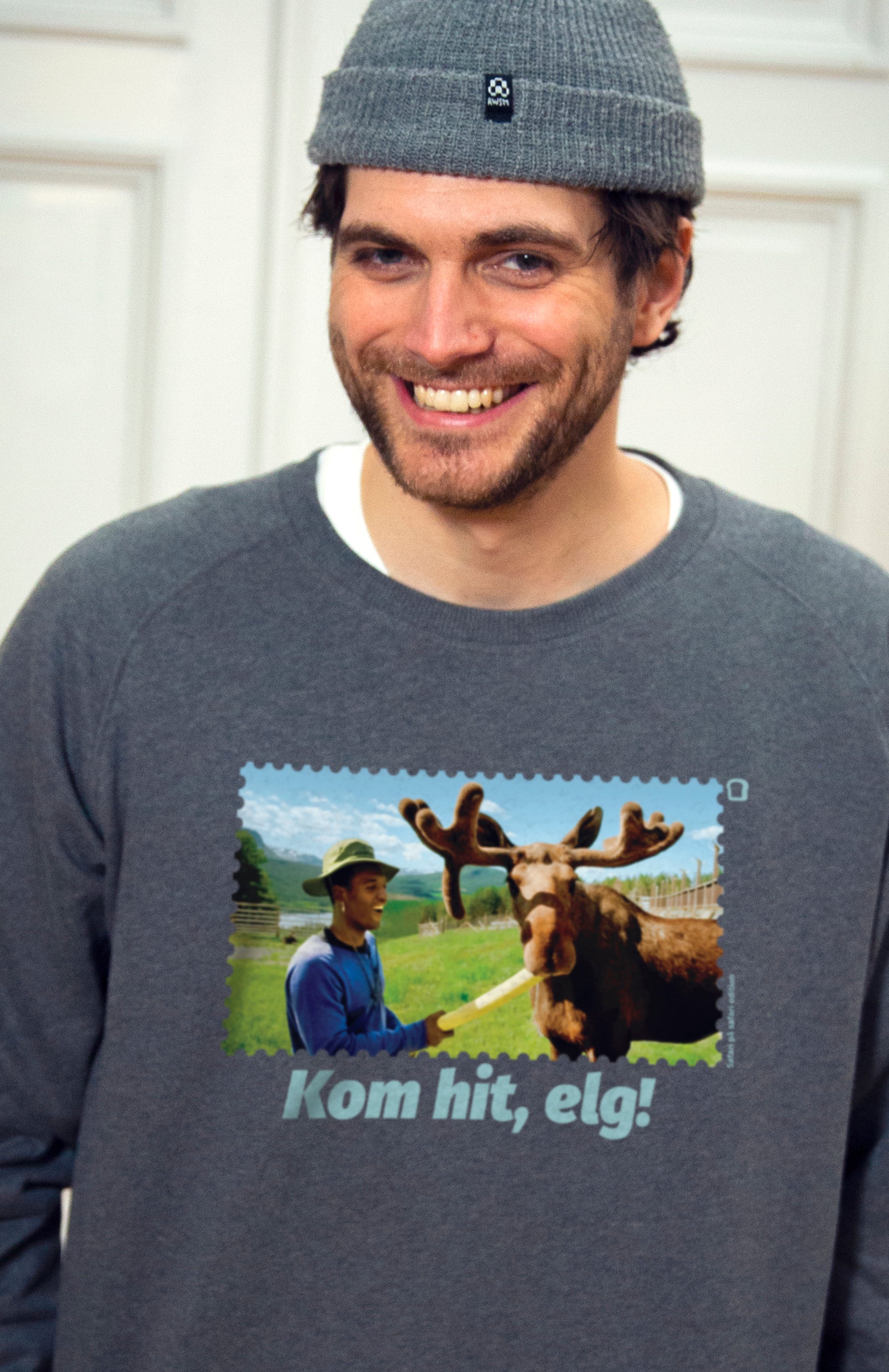 Unisex Sweatshirt Grå - Kom hit, Elg!